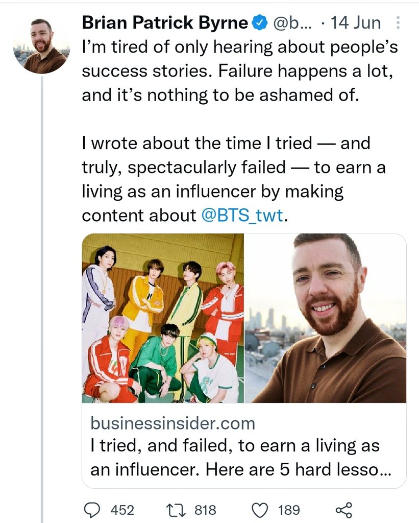 Brian Patrick meneruskan narasi/storytelling “BTS against the World” yang sudah dijalankan ARMY & Influencer sejak 2017. Dengan situs dot com, masyarakat dan fandom yang membebek akan lebih percaya bukan?