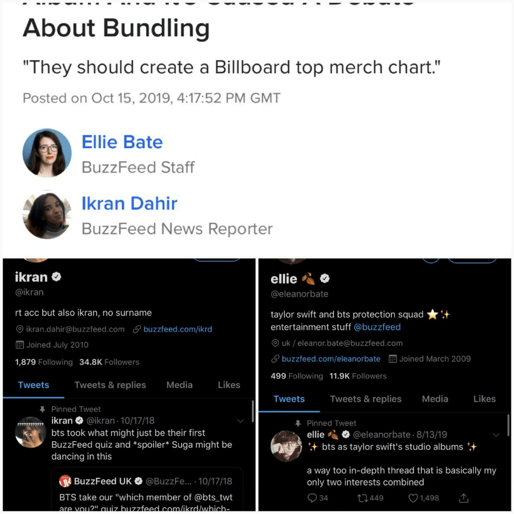 Influencer bayaran telah menyusup ke ruang jurnalisme yang sebenarnya. Melalui opini penggemar atau selebriti yang bias dipublikasikan di bawah outlet resmi seperti Rolling Stone atau WallStreet Journal, penggemar lain kemudian menggunakan ini untuk mengklaim itu sebagai standar pelaporan. Para “jurnalis” bayaran secara teratur menggunakan platform mereka untuk memfitnah kelompok lain. Contoh lain adalah Ikran Dahir dan Ellie Bate, keduanya akun ARMY di twitter, menggunakan platform mereka di Buzzfeed untuk menuduh SuperM secara palsu meningkatkan penjualan album ke chart di Billboard.